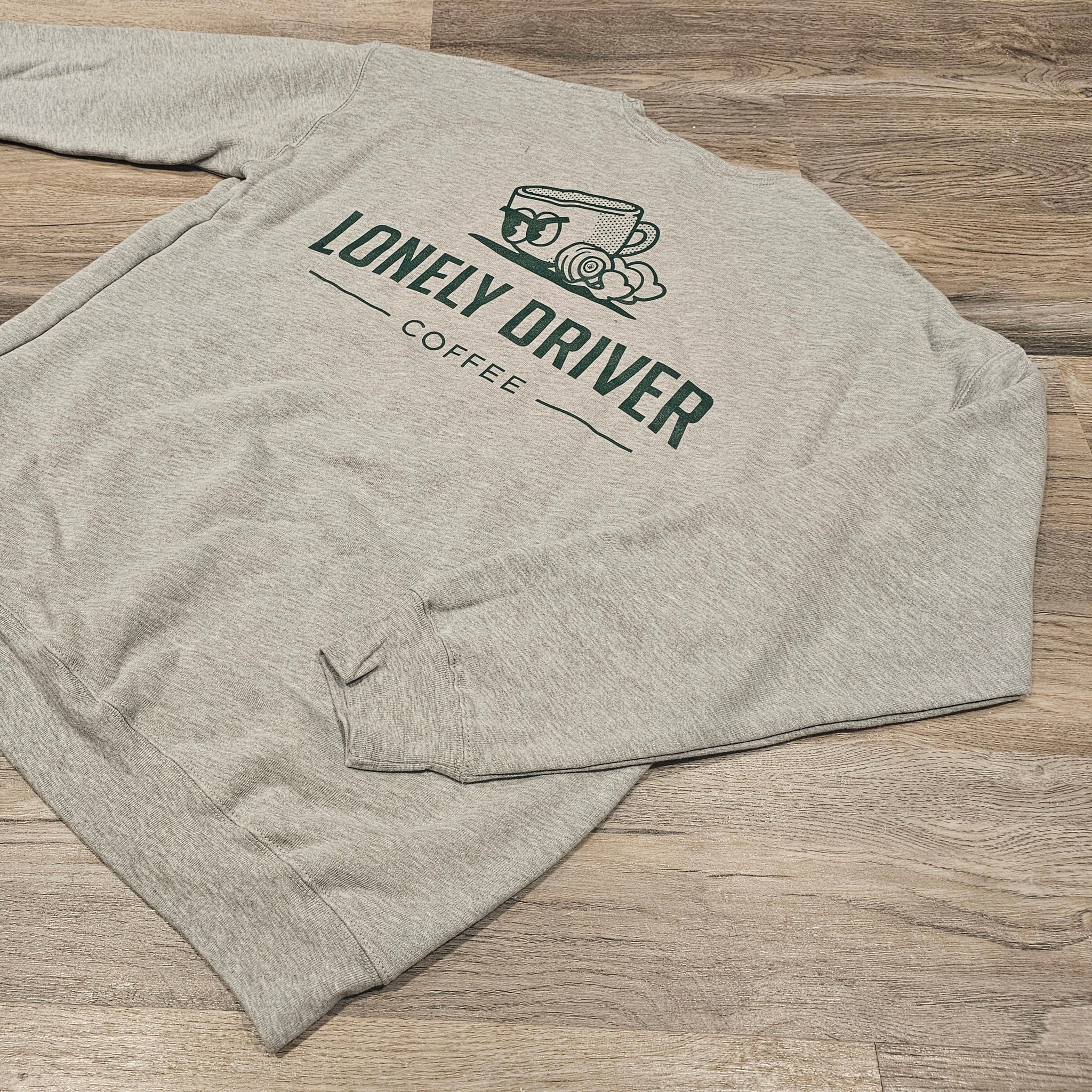 Lonely Driver Coffee crew neck sweater with Super Dark coffee logo (front and back)