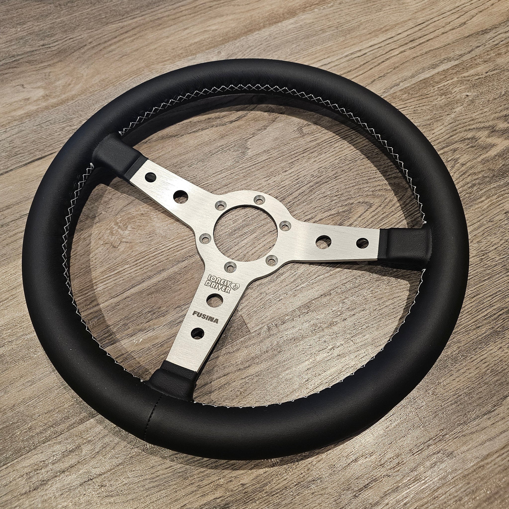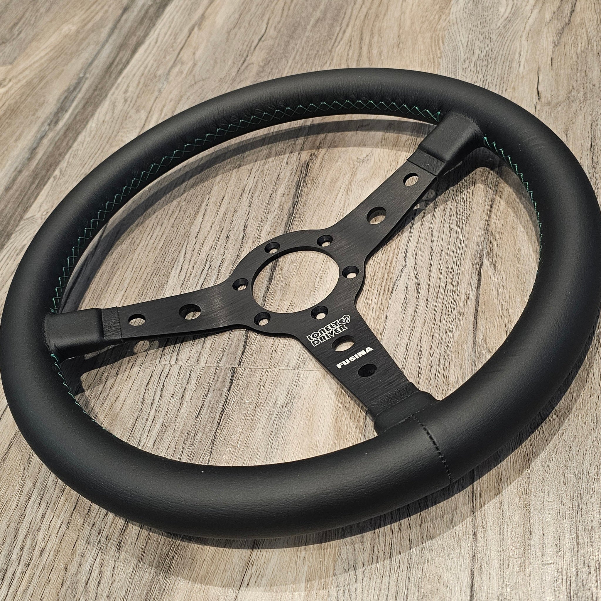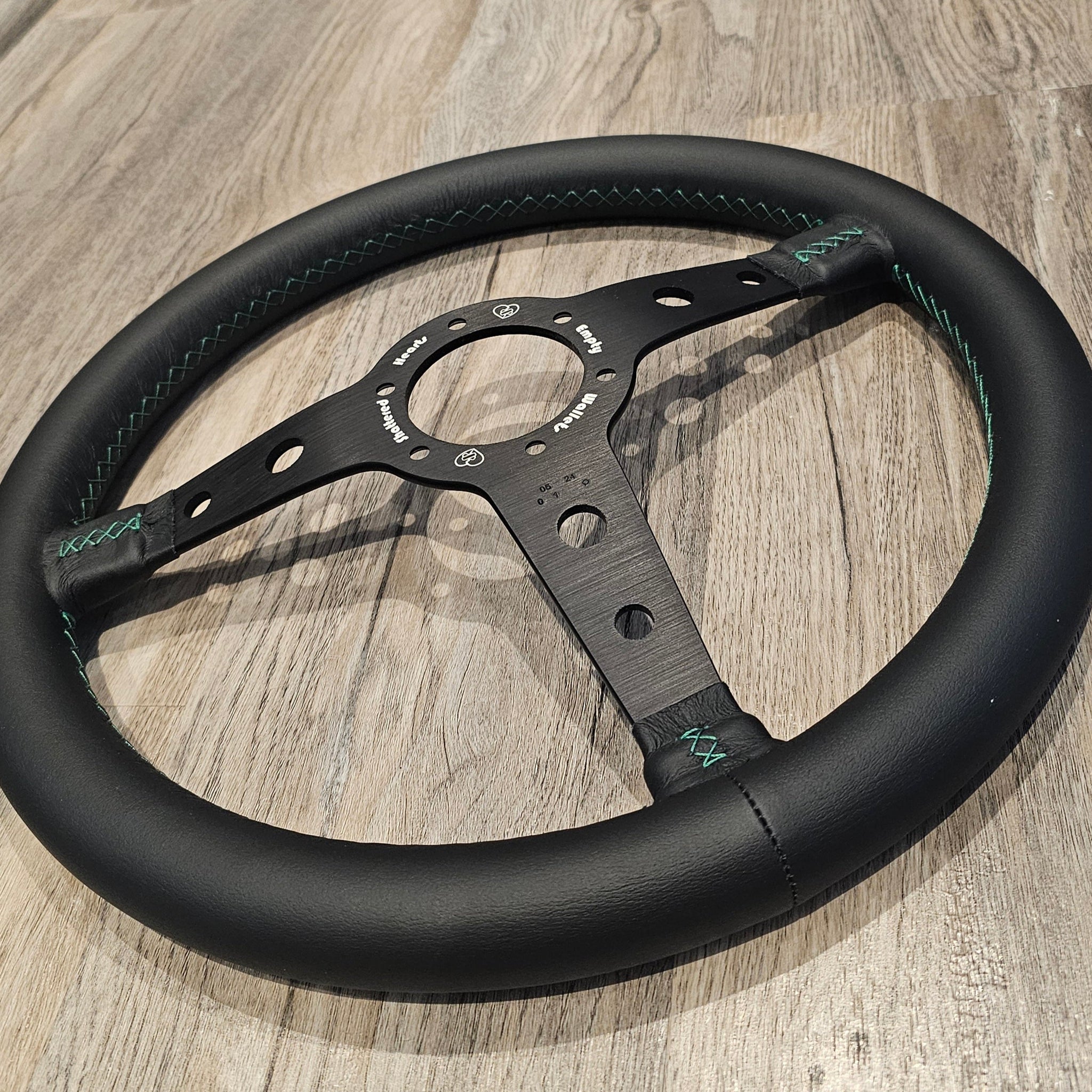A collaborative project with our friends in Italy. Like a fine Italian suit, these wheels can be customized to your car. Spoke color, handle material, handle color, and stitch color.